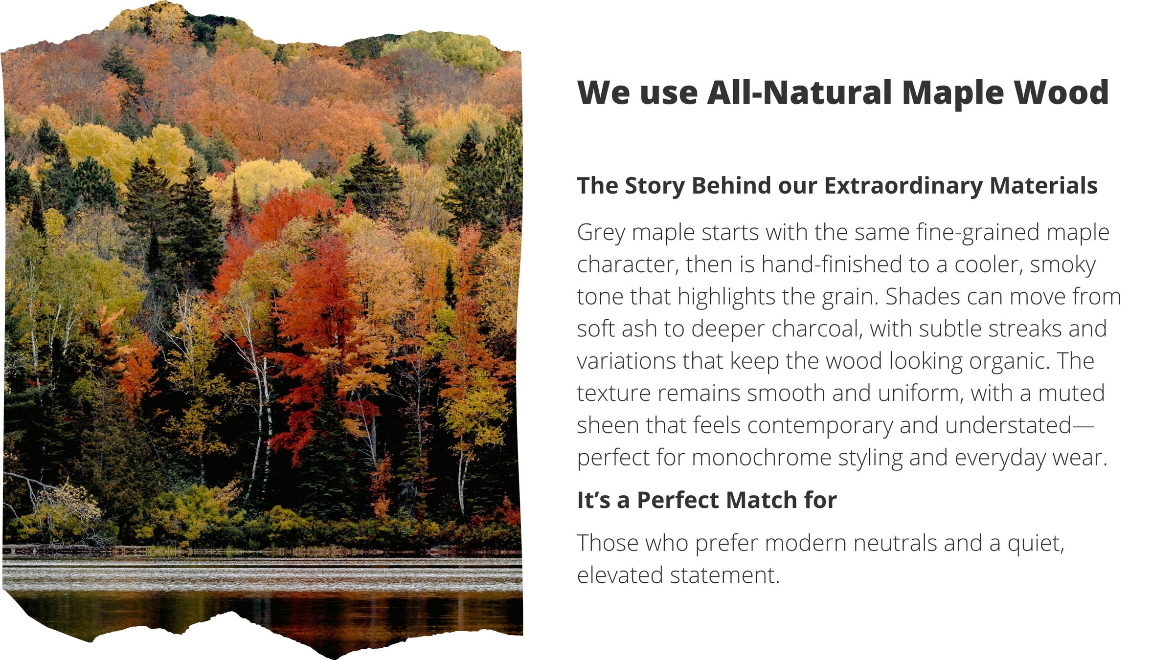 Thanks to our special constructions made from natural materials, your Treed model means you’re wearing a genuine piece of nature.