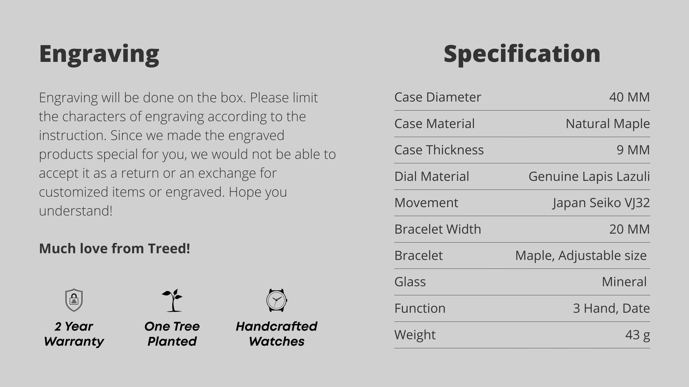 Treed watches come in beautiful gift-ready wooden boxes. Our team is here to help you create something truly special, whether it's a treat for yourself or a gift for someone dear.