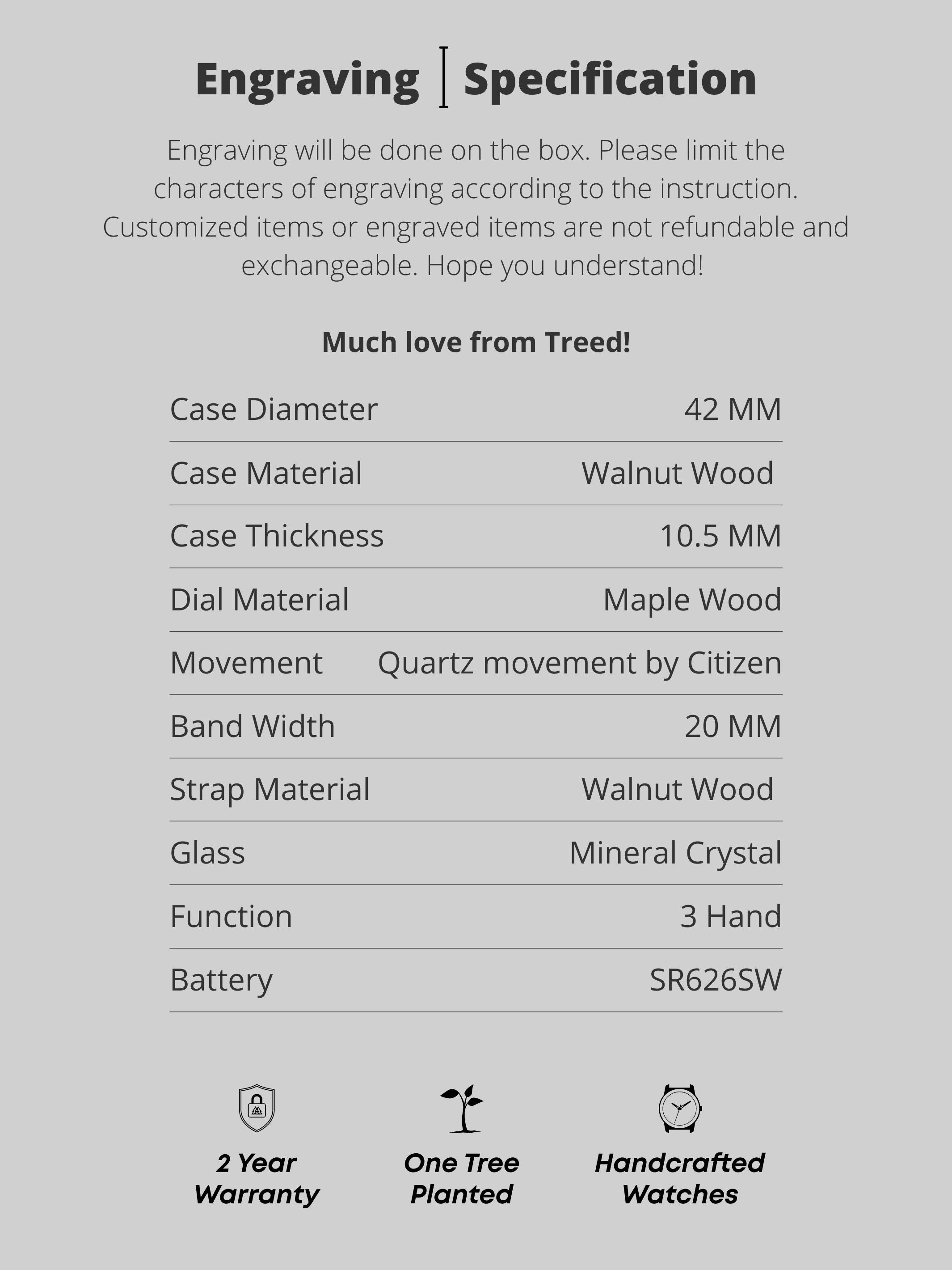 Treed watches come in beautiful gift-ready wooden boxes. Our team is here to help you create something truly special, whether it's a treat for yourself or a gift for someone dear.